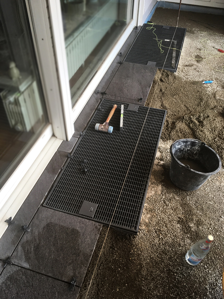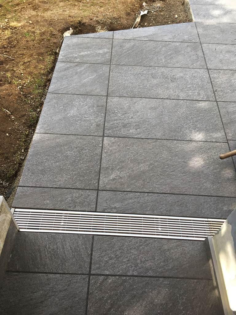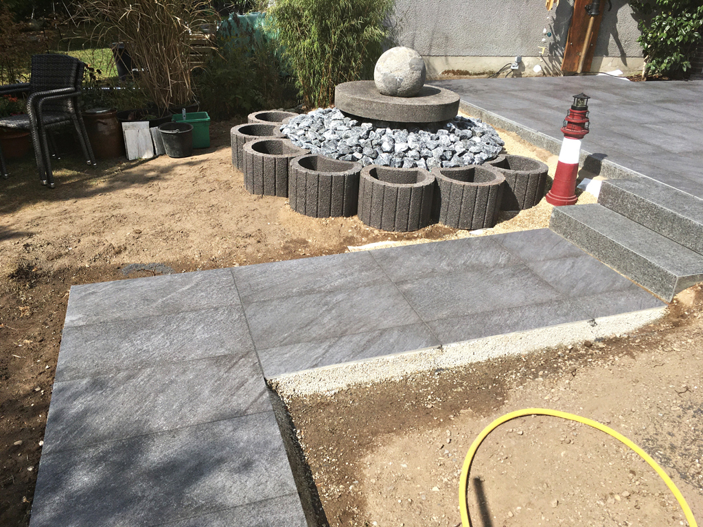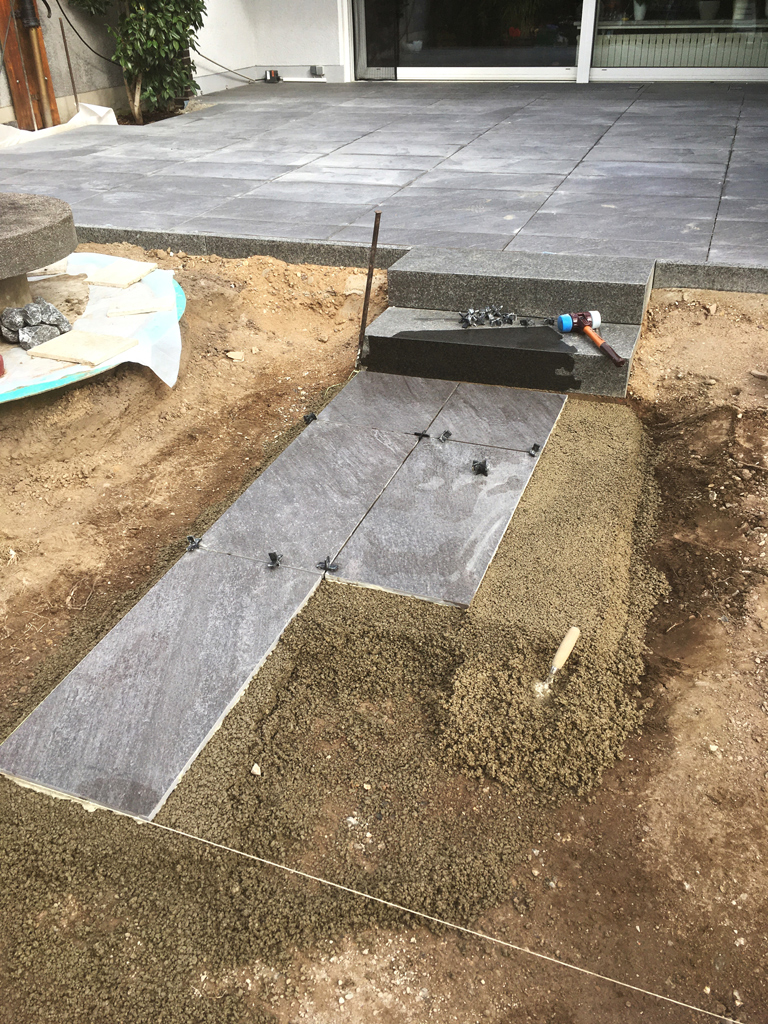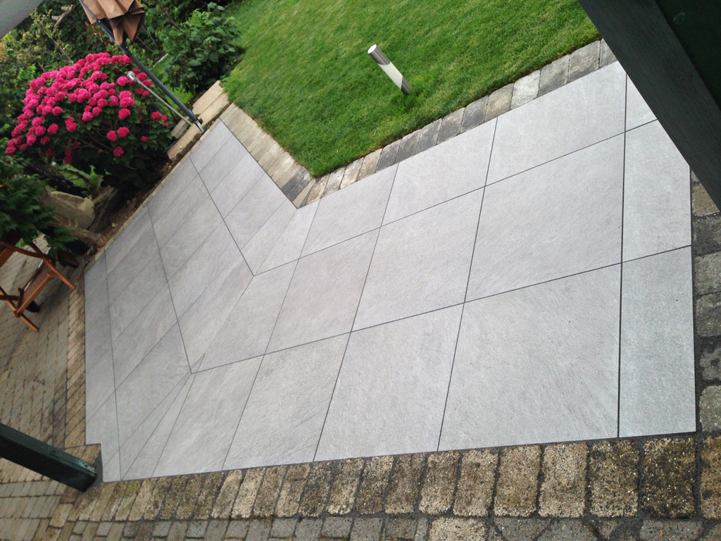 Auch die gebundene Verlegung von Platten aus Naturstein und Keramik gehört zu unserem Dienstleistungsspektrum. Diese Bauweise bietet in Kombination mit Bewegungsfugen einen optimalen Zusammenhalt der späteren Fläche.